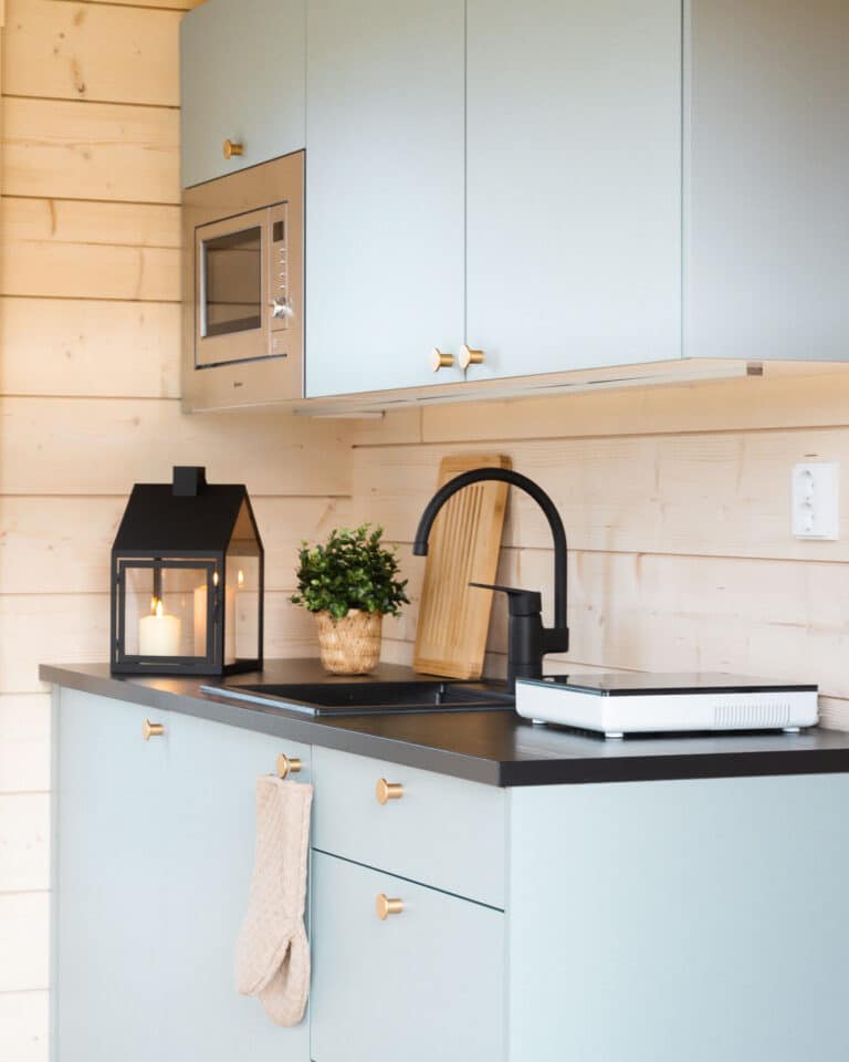 Valmiskeittiö hirsimökkiin on helppo lisä, joka kuitenkin antaa paljon. Integroitu jääkaappi, tiskikone ja mikro luovat pieneenkin keittiöön harmonisen ilmeen. Suunnittele kanssamme tarpeitasi vastaava kokonaisuus ja viimeistele keittiön uniikki ilme laajan väri- ja vedinvalikoiman avulla.