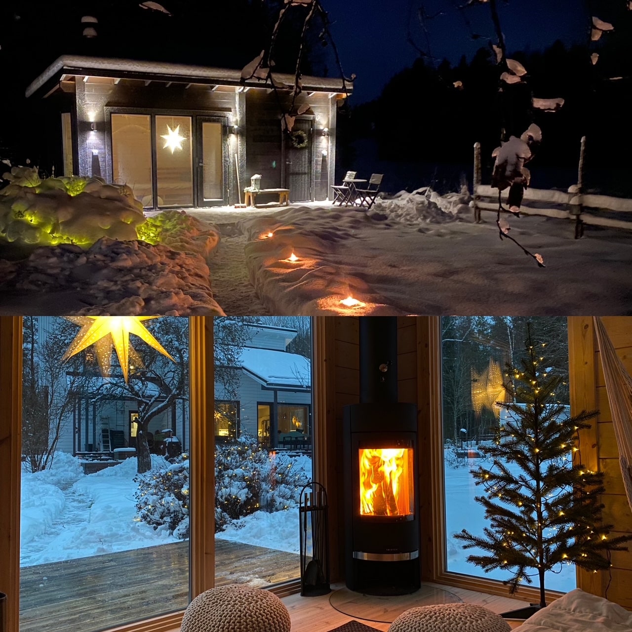Sauna tuli meille juhannuksena 2021, joten siitä löytyi niin monta tunteikasta kuvaa, että valinta meni tosi vaikeaksi. Saunan saapuminen pihaan, ensimmäiset löylyt juhannuksena, ensimmäinen yö lasten kanssa tuvan lattialla (kun vuodesohvaa ei vielä ollut), ensimmäinen joulusauna, kesäiset hetket puutarhassa ja saunan terassilla jne. Joulukalenterin kunniaksi valitsimme sitten kuvayhdistelmän joulusaunasta ja jouluisesta saunatuvasta muutaman vuoden takaa. Jouluperinteisiimme kuuluu nykyään jouluaaton pöiväsaunan lisäksi, aatonaaton iltasauna, jouluaaton iltasauna, joulupäivän iltasauna sekä tapaninpäivän sauna