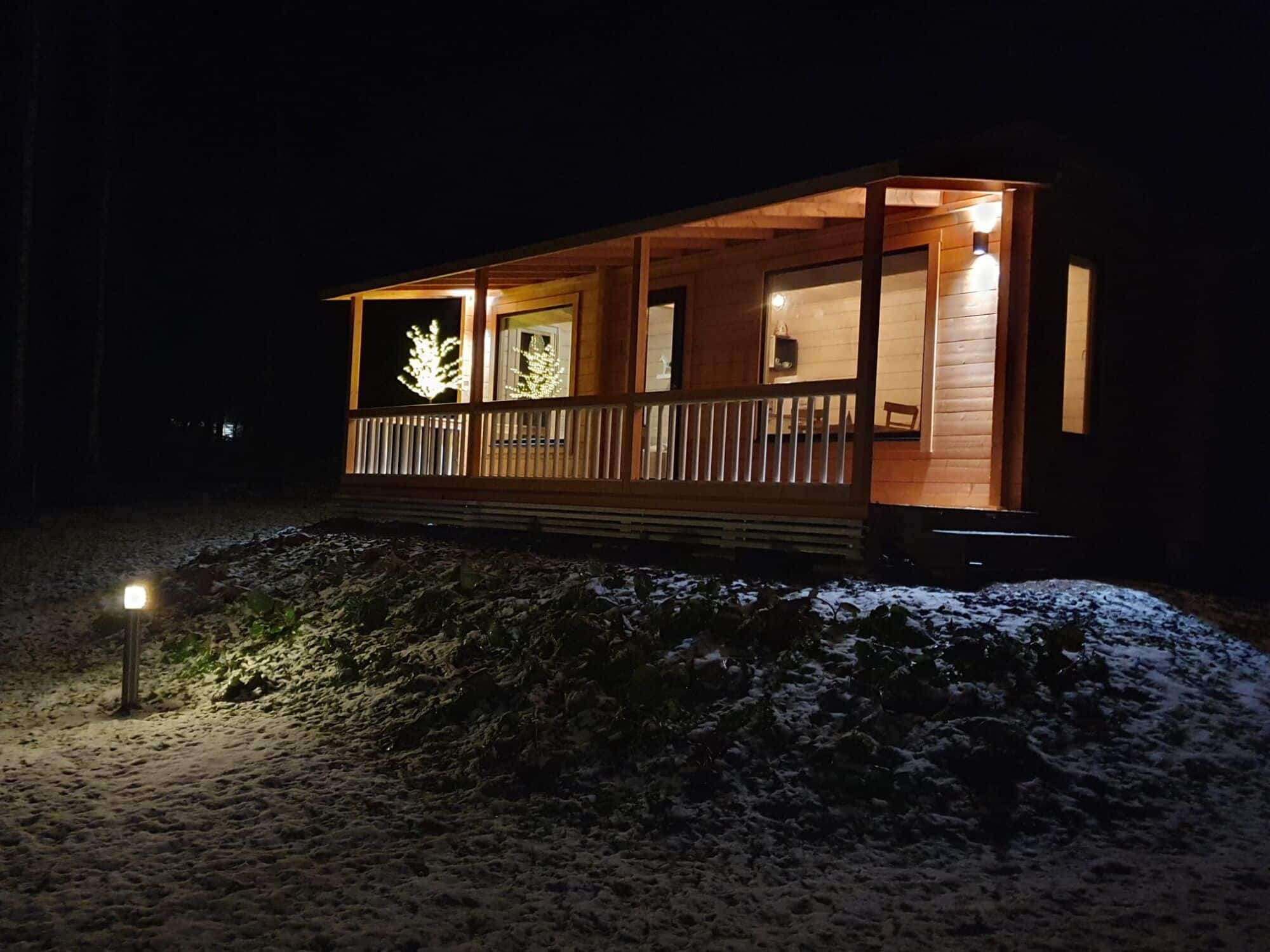 Minimalistinen kuvitus lehtimäisestä oksasta, jossa on viisi vihreää lehteä ja muutama pieni abstrakti muoto vaalealla taustalla.