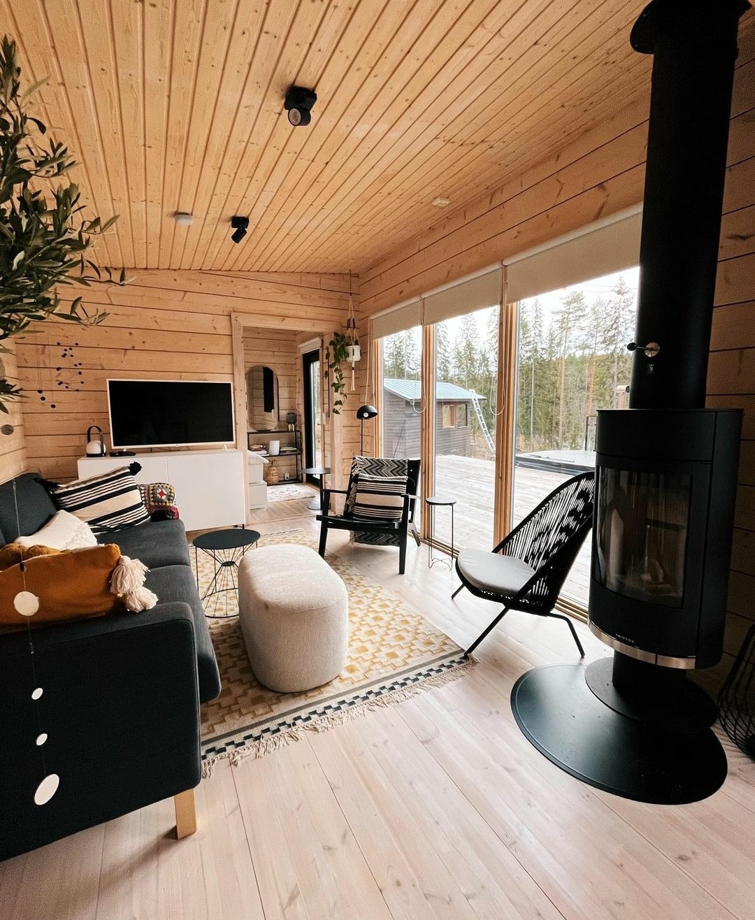 Mökki 30 suuret mitat mahdollistavat erillisen makuu- ja oleskelutilan luomisen, tarjoten samalla mahdollisuuden jakaa tila pienempiin, intiimimpiin osioihin. Tämä tekee siitä ihanteellisen paikan suuremmille perheille, ystäväporukoille tai tapahtumien pitopaikaksi, tarjoten samalla korkeatasoista mukavuutta ja yksityisyyttä.