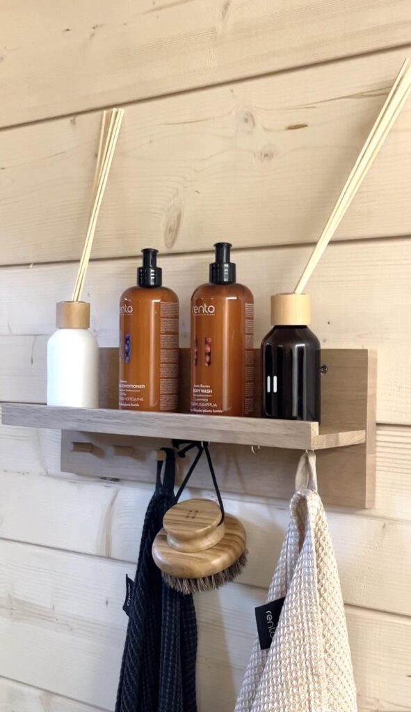 Pyyhkeiden säilytys on tärkeä yksityiskohta: ripustuskoukut saunan sisällä eivät vie tilaa, mutta pitävät pyyhkeet lämpöisenä ja käden ulottuvilla. Myös välivilvoittelu on helpompaa.