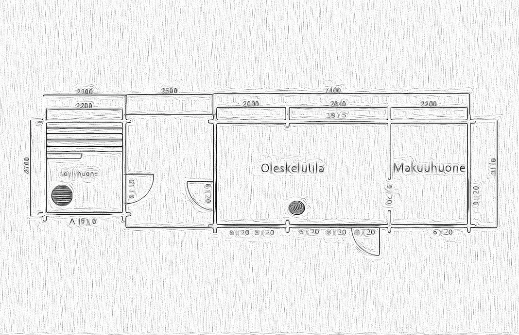 Asiakkaan toiveena on ollut erilliset sauna- ja oleskeluosastot. Näin ollen löylyhuoneen lämpö ja höyry eivät pääse oleskelutilaan. Pihasaunan saunaosastoon on kulku ulkopuolelta. Lisäksi tähän pihasaunaan on toteutettu erillinen pukuhuone.